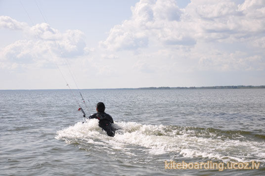 ![]() 2 Вернуться на берег при ослаблении ветра, когда ехать на доске просто невозможно. Даже в слабый отжимной ветер, бодидрагом всегда можно вырезаться против ветра, если только кайт может держаться в воздухе. Понятно, что в отжим кататься не рекомендуется, но ведь ветер может поменять направление в то время, когда вы на воде.